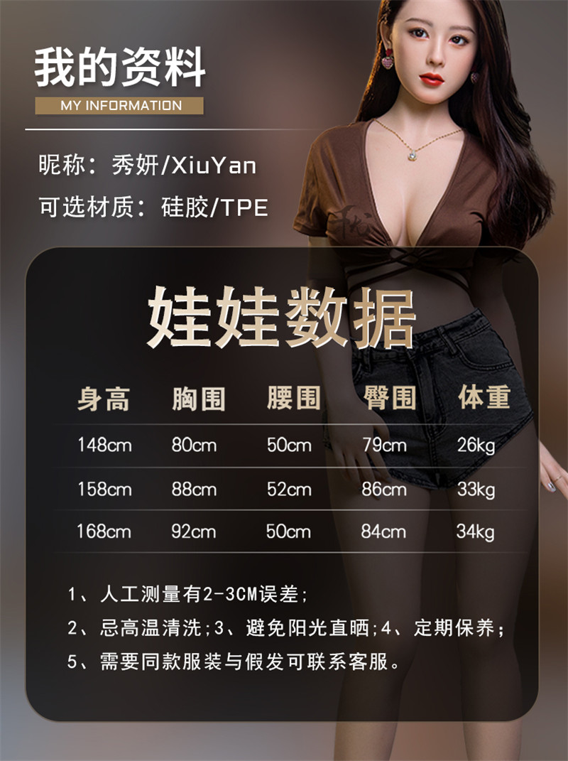 按自己需要的身高選擇,145CM以上免費贈送,精緻妝容,果凍胸,增加其他配置聯繫客服