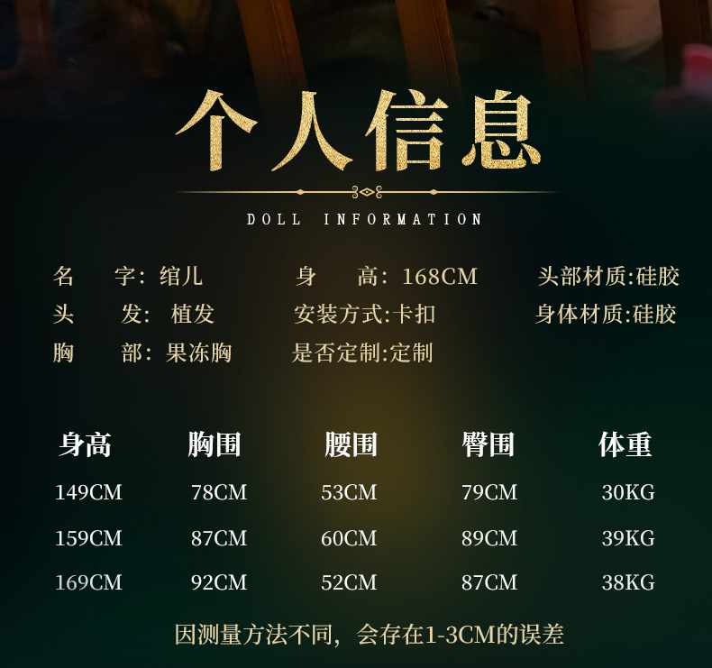 按自己需要的身高選擇,145CM以上免費贈送,精緻妝容,果凍胸,增加其他配置聯繫客服