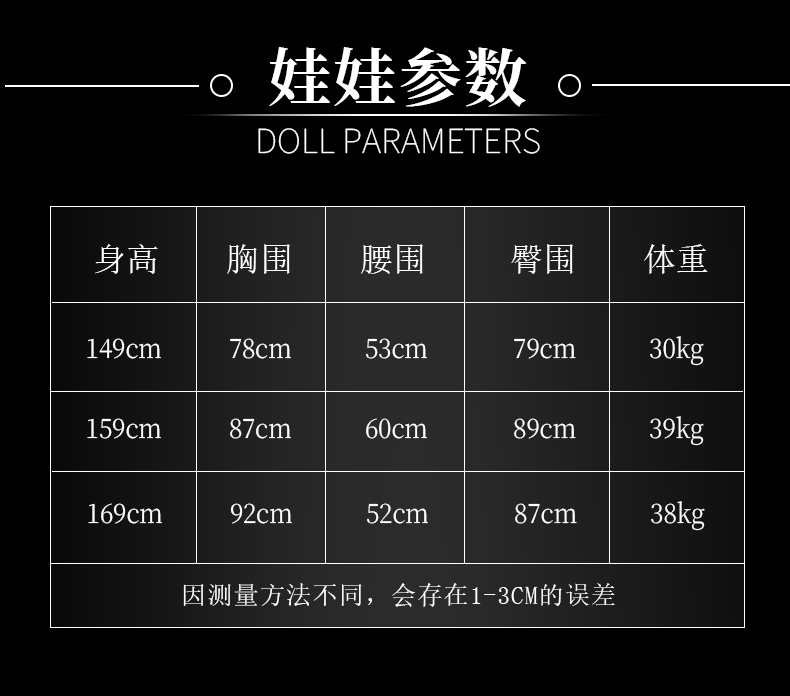 按自己需要的身高選擇,145CM以上免費贈送,精緻妝容,果凍胸,增加其他配置聯繫客服
